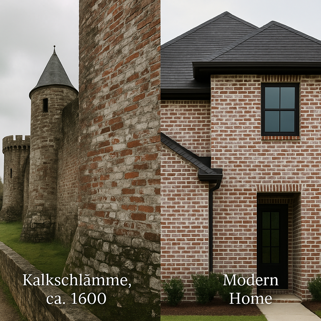 The most authentic historical term. “Kalk” means lime, and “Schlämme” means slurry — a perfect description of the lime-mortar mixture brushed or troweled over brickwork.