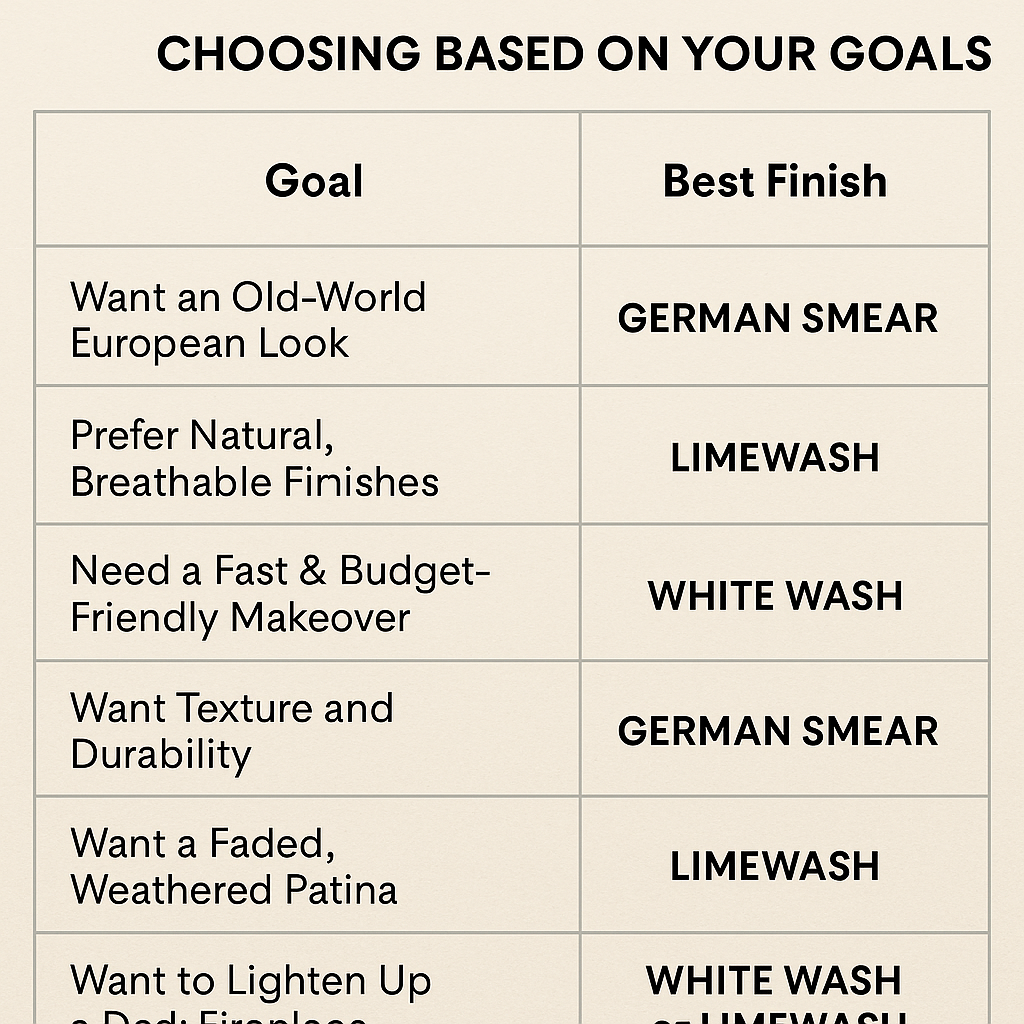 The Big Brick Finish Showdown: German Smear, Limewash, or White Wash?